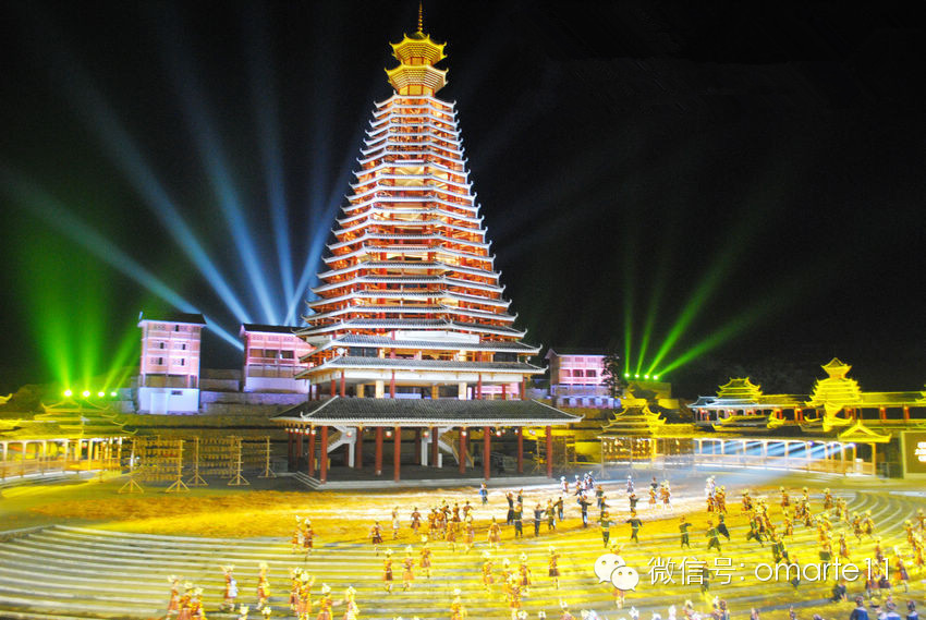 侗族大歌大型實景展演使用了歐瑪燈光新品MOORE 380W三合一電腦燈。此款燈具不僅實現(xiàn)可實現(xiàn)BEAM效果,還可兼做SPOT和WASH燈具使用,實現(xiàn)了多臺電腦燈具的效果,使用更加靈活多變。