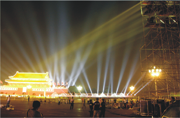 搭建在氣勢磅礴的天安門廣場上,堪稱燈光華美絢爛,舞美艷麗美煥,歐瑪有幸為這次晚會提供燈光設(shè)備。