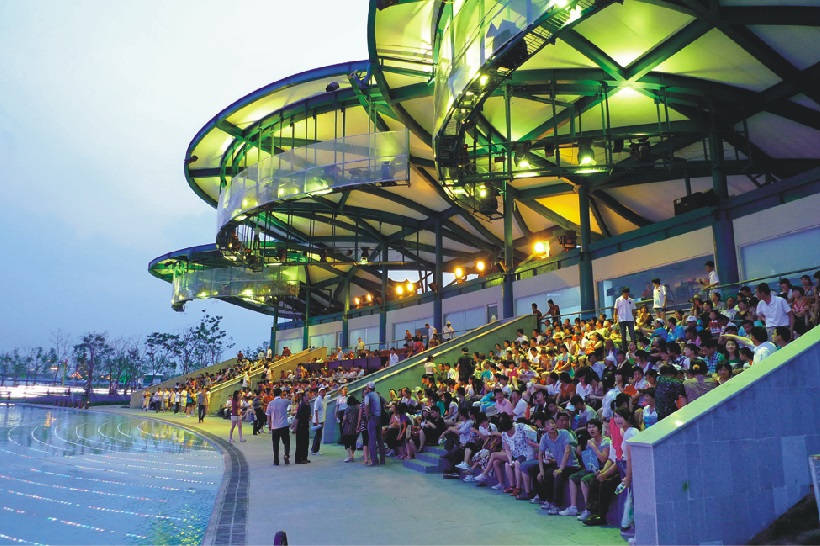 大型水上舞臺(tái)演出燈光秀是2011年西安世園會(huì)的精彩看點(diǎn)和重要項(xiàng)目,它以生態(tài)、環(huán)保、共筑綠色家園為主題,綜合運(yùn)用燈光、水幕、