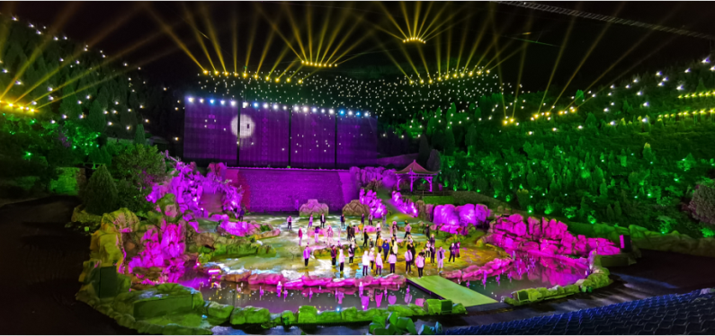 在此背景下,大型實(shí)景光影秀《好漢山東》應(yīng)運(yùn)而生!由山東石崮寨都市農(nóng)業(yè)生態(tài)園股份有限公司出品,巔峰智業(yè)旗下子公司北京中視巔峰光影科技有限公司承制。中國(guó)知名旅游專家、巔峰智業(yè)創(chuàng)始人劉鋒博士擔(dān)任總策劃,光影秀創(chuàng)始人、中視巔峰首席專家曲國(guó)軍擔(dān)任總導(dǎo)演,中視巔峰總經(jīng)理、舞美燈光技術(shù)總顧問雷奎擔(dān)任總制作。