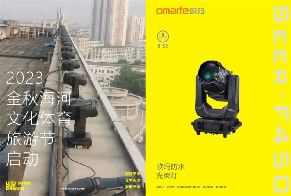 作為此次燈光秀的主力軍歐瑪防水光束燈(Seer-F450)功率小,光效高,優(yōu)質(zhì)的光學巧妙匹配,光柱銳利,穩(wěn)定耐用。現(xiàn)場效果深受好評。