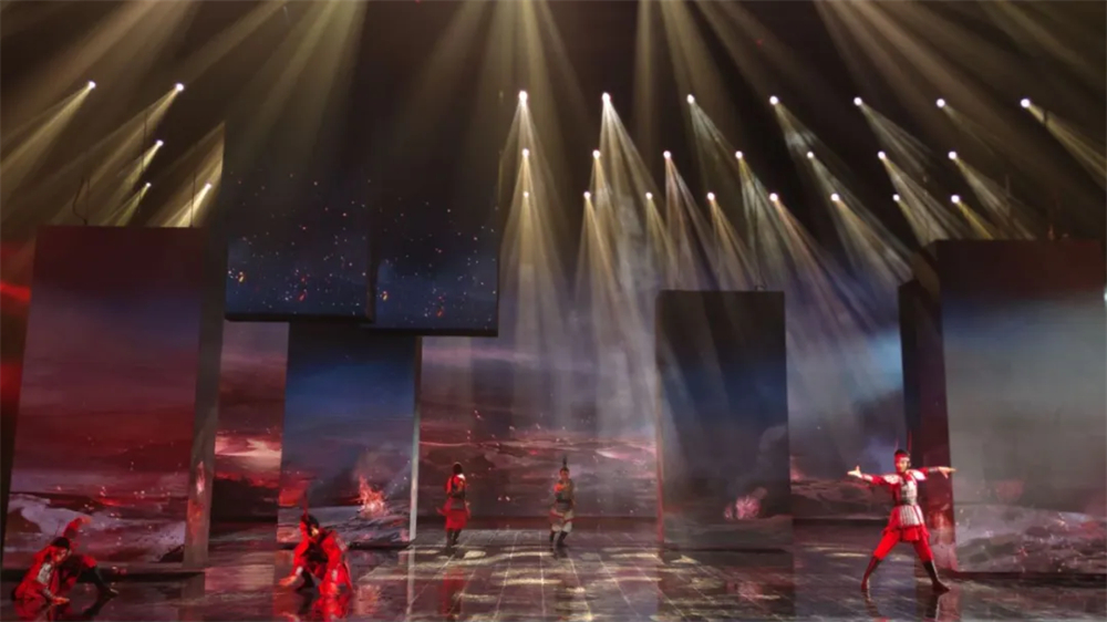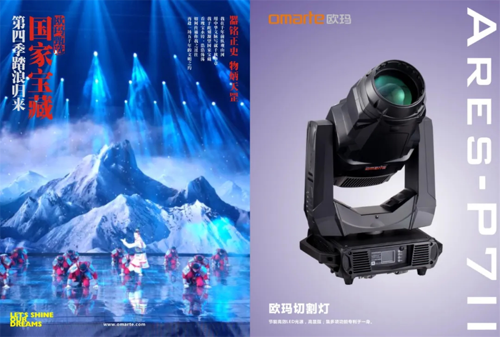 現(xiàn)場燈光設計極其精妙,歐瑪燈光產品新奇出彩與多樣的科技手段完美融合,讓觀眾感受置身中華文明上下五千年氛圍。其中歐瑪ARES-P7II切割燈,快速運行的切割系統(tǒng),色彩鮮艷飽滿,過渡自然,打造出充滿文化韻味的舞臺,演員的情緒也在光色渲染中放大,夢幻的光影空間猶如時光隧道一樣,帶領觀眾穿越到歷史長廊。