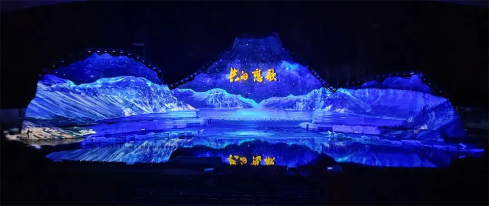 《長(zhǎng)白戀歌》采用歐瑪800多臺(tái)防水系列燈光設(shè)備,主要是:防水LED切割燈、防水LED三合一圖案燈、防水LED染色燈。