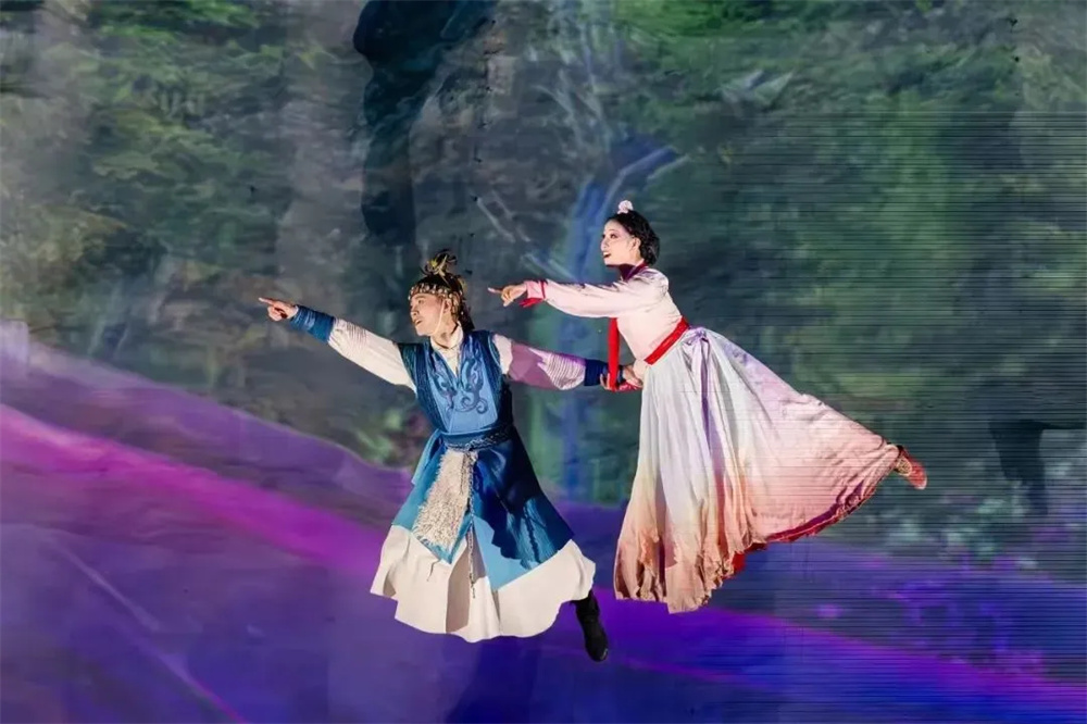 《長(zhǎng)白戀歌》是一場(chǎng)深度沉浸式的演出,巧妙地融合了關(guān)東文化、滿族民俗、朝鮮族風(fēng)情、長(zhǎng)白山地質(zhì)奇觀與民間傳說(shuō),借助現(xiàn)代科技與傳統(tǒng)藝術(shù)的魅力,讓觀眾仿佛穿梭于時(shí)空的隧道,見(jiàn)證了一段段動(dòng)人心魄的歷史片段。從長(zhǎng)白山的壯麗美景,到朝鮮族的熱情好客,再到滿族的神秘莊重,每一幕都是一幅生動(dòng)的畫卷,訴說(shuō)著這片土地的過(guò)往與未來(lái)。