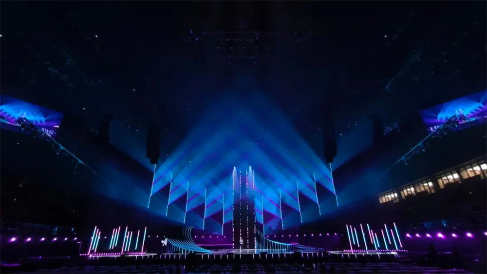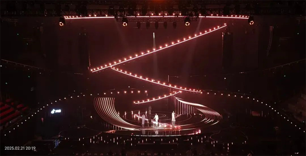 晚會(huì)燈光設(shè)計(jì)強(qiáng)調(diào)簡(jiǎn)潔、清晰的線條感,以及功能性與美學(xué)的結(jié)合。通過(guò)精準(zhǔn)的光影搭配與舞臺(tái)元素的協(xié)同作用,提升了表演的視覺沖擊力和情感共鳴。設(shè)計(jì)師巧妙運(yùn)用光的物理屬性,在不同的表演段落中精準(zhǔn)調(diào)控光束的方向、角度、色彩變化,細(xì)膩?zhàn)匀坏匾龑?dǎo)觀眾情感隨表演變化而起伏,為觀眾創(chuàng)造融入感十足的視聽體驗(yàn)。