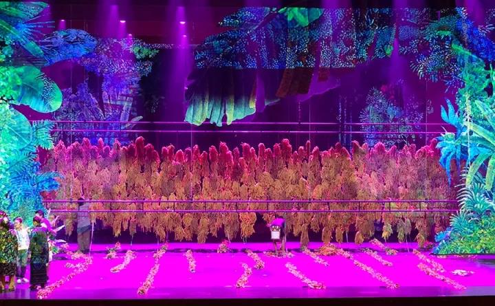《黎族家園》在北京演出后,曾有一位會(huì)演組委會(huì)的攝影師說:“看了這么多省份的演出,這臺(tái)是最美的!”一個(gè)簡單的“美”字,背后是舞美設(shè)計(jì)總負(fù)責(zé)人蒙秦老師和團(tuán)隊(duì)們不分晝夜的奮戰(zhàn)。