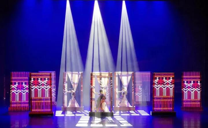 “好的燈光和舞美一定是為舞臺(tái)上的演出服務(wù)”蒙秦老師表示,從2015年11月開始設(shè)計(jì)到最終定稿,這中間他們設(shè)計(jì)了上百張稿,而且在燈具的選擇也是精挑細(xì)選,最后決定選用歐瑪燈光600wLED切割燈(Ares-P6)19顆40wLED蜂眼染色燈(Eos-B19)、天地排燈(Leo-BD30)作為劇目用燈。正是對(duì)每一個(gè)細(xì)節(jié)的精打細(xì)磨才讓《黎族家園》拿下了“最佳舞臺(tái)美術(shù)”單項(xiàng)獎(jiǎng)。