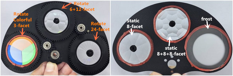 Prism2: static 8-facet prism + static 8+8+8-facet prism + frost; two prisms can combine together;