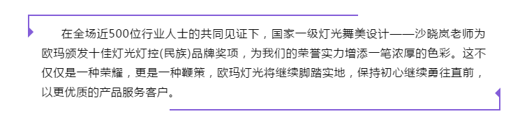 傲嬌盛會(huì) | 歐瑪燈光喜獲“十佳燈光燈控(民族)品牌獎(jiǎng)”
