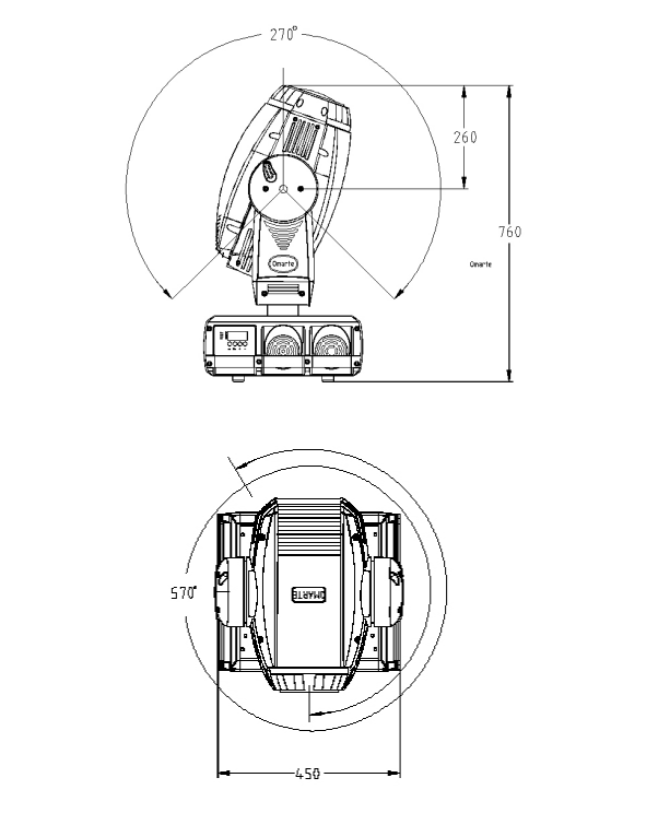 · 角度:   - PAN = 540°    - TILT = 270°