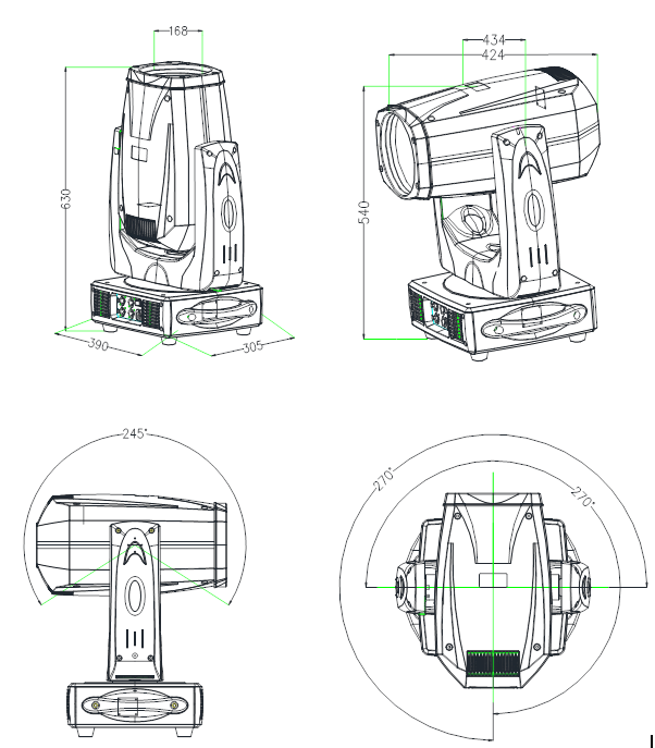 · 角度:  PAN = 540°   TILT = 245°